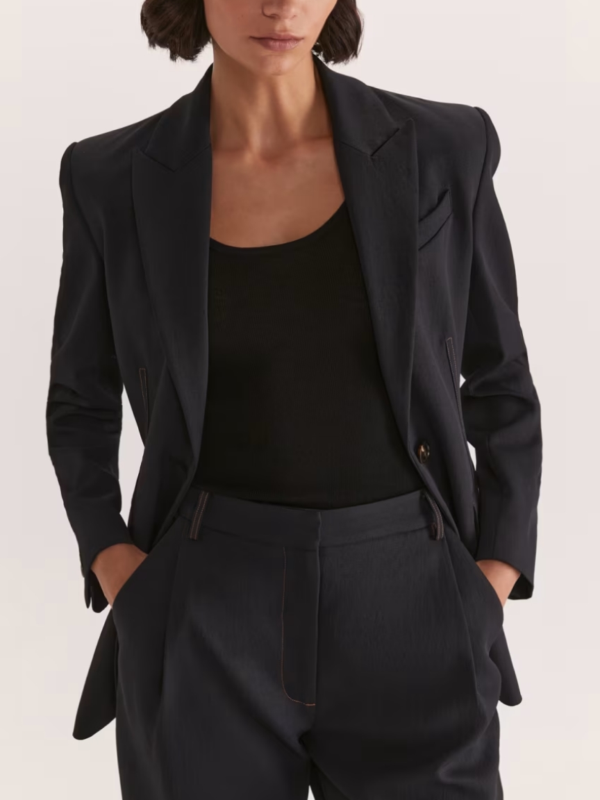 Dharma Stitch Detail Blazer: With its unique front stitch details, this blazer offers a more elevated approach to the typical blazer. This women’s blazer is ideal for professional settings but can also be dressed down with a casual dress or skirt for a more relaxed vibe.